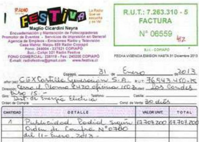 Desde la empresa CGX Castilla Generación también señalaron que el pago corresponde a una campaña publicitaria que se realizó en diversos medios locales para dar a conocer las características y beneficios de Central Castilla.