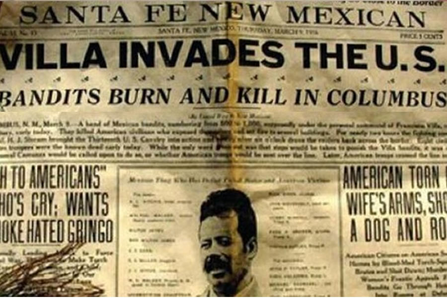 El gobierno estadounidense reaccionó con su acostumbrada furia y bajo la venia del entreguista Venustiano Carranza envió la expedición llamada “La Punitiva” al mando del general John J. Pershing con diez mil soldados (muchos de ellos de raza negra) centenares de aviones, vehículos e inclusive blindados.