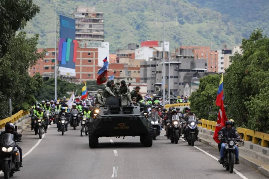 Una caravana de tanques de la Fuerza Armada Nacional Bolivariana (FANB) iniciada desde la base militar de Fuerte Tiuna, en Caracas, marcó el tono de la jornada y el mensaje de Venezuela a los EE.UU. y los países que se han plegado a sus campañas de desinformación y ataques: todo el poder del pueblo bolivariano está centrado en la defensa de cada palmo de la nación.